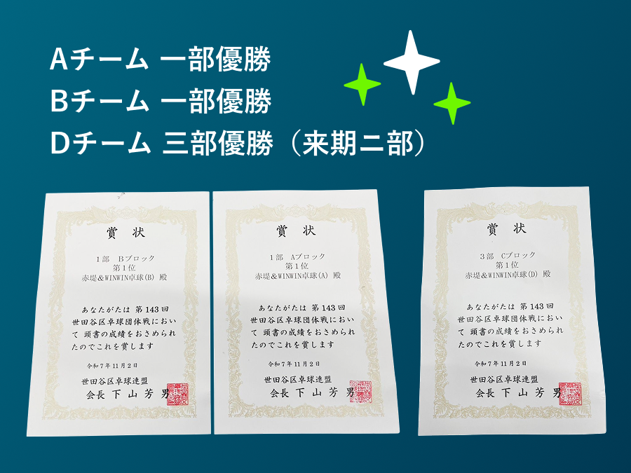 第143回世田谷区卓球団体戦 クラブ男子結果報告!